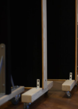 Per a la sala de gravació tenim 30 m2 amb una acústica concretament tractada amb uns difusors dissenyats específicament per aquesta sala i uns panells acústics absorbents que ens donen l’opció de crear càmeres acústiques, segons la resposta de l’instrument.